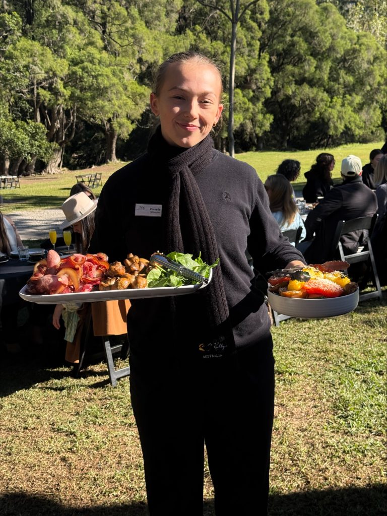 After landing, guests made their way to O’Reilly’s Canungra Valley Vineyards. There, they enjoyed a Producers Breakfast beside the creek, celebrating local farmers and fresh regional produce. The menu featured ingredients from Tommerup’s Dairy Farm, Peak Crossing Veg, and other local growers. Where the vineyard team created a warm, relaxed atmosphere filled with laughter, good food, and sparkling wine.